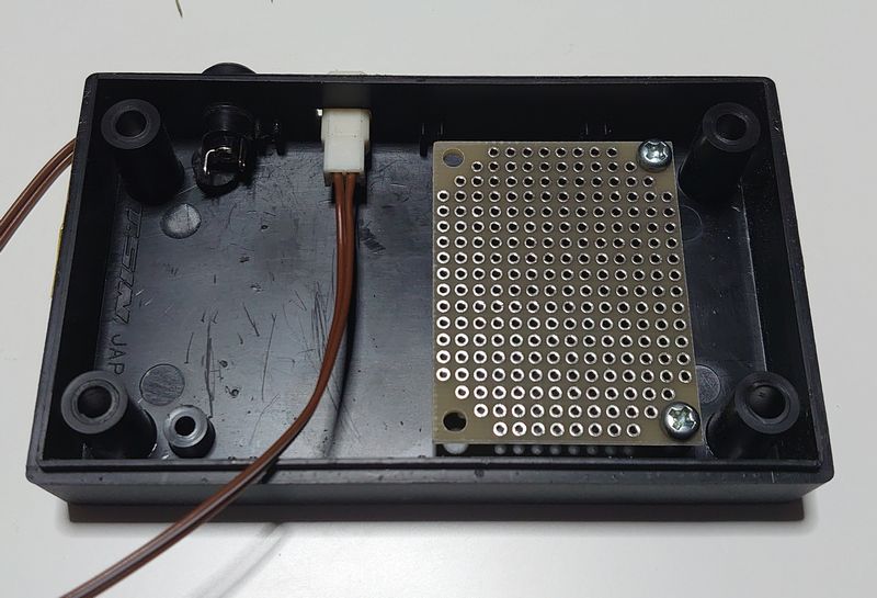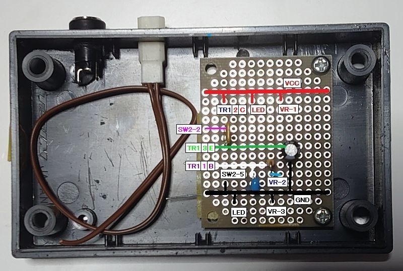コントローラー第2弾 試作記=2=製作・動作確認編 コントローラー第2弾 試作記=2= 製作・動作確認編 コントローラー第2弾 試作記=1= 製作準備編から続く サイトはこちら。 穴開けが終了し、パーツを取付確認をしました。 側面の様子。 フィーダー取付穴が、若干大きく少し不細工になってしまいました。 ケース内部下側の様子。 ケース内部上部の様子。 基板にパーツを配置し、配線を記入して、確認をしました。 ここまでしてから、半田付けを開始しました。 話題休眠。 =広告= 話を戻して。 作成途中は、前回の試作と変わらないので、省略します。 一通り配線が終わった状態の様子。 今回は、動作確認用に基板に検測用端子を用意しました。 ボリュームの接続など、配線を確認し、アダプターを 接続しました。 電源投入でLEDは当然点灯。 フィーダーを接続し動力車が、・・・。 動かない。 VCCーGNDの配線は、問題なし。 ベースに入る電圧は、ボリュームに対応し、変化しています。 エミッターからの出力が1.2Vしかなく、これが原因だと思います。 しかし、配線の不具合が見当たらず、参考にしたサイトの管理者に アドバイスを求めました。 すぐに返事をいただき、回路的には問題なさそうとの事。 実態の配線からトランジスタ周りが疑わしいのでは、 とのアドバイスをいただきました。 データーシートを引っ張り出し、配線確認中。 次回は、修正編です。 終わるのか・・・。 =広告= 閑古鳥が鳴いている羽田空港のお土産屋を、ネットから購入して、 サポートしませんか? PR