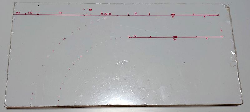 先ずは、ベースボードにレールの配置をケガキました。