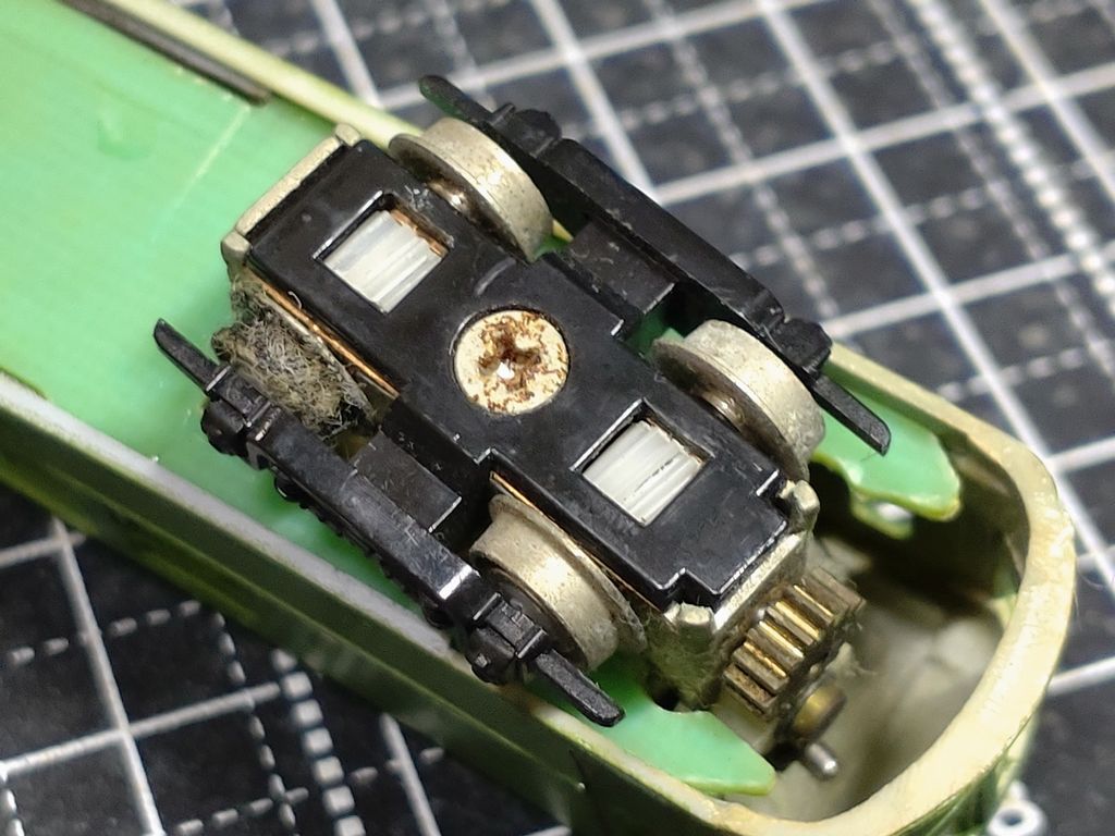動力ユニットの修理備忘録 動力ユニットの修理備忘録 品番:2620 品名:ベルニナ号 GM製の箱根登山鉄道の新しいキットに付属していたTomix製の動力ユニットの修理を試みた件の備忘録です。 動力台車の車輪が腐っており裏技使って磨いてみました。 と言っても動力ユニットに直接配線して台車を動かしただけですが、・・・。 これでも単純に動かず、一度動力ユニットを完全に分解して、古くなったグリスなどを除去して100円ショップで買ってきた機械油で洗浄して動くようにしました。 台車はクリーニング液をたっぷり染込ませた綿棒を使って磨きました。 ゴムタイヤが腐っていたのでこれは削り取りました。 メンテナンス部材の確認をしたくTomixのお客様相談センターに相談のメールを入れました。 その返答が余りにもふざけた回答だったので、概要を報告したいと思います。 回答の概要。 お客様はGM製のキットに付属した動力ユニットのメンテナンスとの事ですので、GMへご確認をお願い致します。 ・・・。ベルニナ号の動力ユニットの保守部品の確認をなんでGMへしなくてはいけないのか? ふざけた回答が届いたので焦りましたが、ここで突っ込んで質問しても埒が明かないと思い自力で調べてみる事にしました。 話題休眠。 =広告= 不要な鉄道模型の買取処分はいかがですが? 新規調達の軍資金稼ぎのどうぞ 話を戻して。 今回は改めて調べてみると、意外と単純に答えが見つかりました。 なんて事はなく、保守部品がありました。 動力台車は何とかなりそうです。 と言うのも、動力ユニットに品番があり、これを基にネットで検索してみると、有ろう事かTomixの保守部品のページが出て来るではありませんか。 そういえば、新しい製品が販売されていたのも思い出しました。 台車交換をする事で一件落着する目途が立ったところで、今回は一段落としました。 トレーラーの腐った車輪の交換が残っていますが、これは何とかなるので良しとしました。