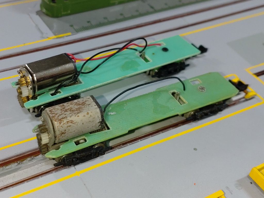 GM製旧動力ユニットの修理備忘録 GM製動力ユニットの修理備忘録 品番:592 品名:ブリル台車 今時こんな動力ユニットを持っている人は居るのでしょうか? また、それを修理しようとしている人など皆無だと思います。 グリーンマックスが最初に箱根登山鉄道モハ1・モハ2を製品化した際に販売された動力ユニットですが、改造のネタにして20年近く放置したところ、あまりに無残な姿になっていました。 流石にこれはいかんと修理を試みました。 実際は改造ネタを製作している最中に配線が外れていくと言うこの動力ユニットのあるあるに苦しみ、一度は修理を試みました。 当時の技術では如何ともし難く、車体の改造のみを先行して行っていきました。 改造ネタについては、後日報告をします。 話題休眠。 =広告= 不要な鉄道模型の処分に買取依頼を検討しませんか? 古いものを処分して、購入資金の足しにどうぞ。 話を戻して。 この動力ユニットについては、購入当時入手困難な雰囲気があったので予備を購入していました。 今となっては不幸中の幸いでした。 床板が今では信じられないような構造をしていました。 改造ネタに合わせて加工をしていたので、単純に入れ替えると言う訳にもいかず、また、同じような加工をするのも大変なので、動力部分を移植することにしました。 修理元の動力ユニットはこんな感じになっています。 過去の格闘した結果です。 修理元の動力ユニットですが、モーター、台車(車輪)が腐っており、これを交換していきます。 ゴムタイヤが痛い状態になっています。 新品は綺麗な物です。 交換作業に移っていきますが、作業途中で分からなくならない様に記録は残していきましたが、流石にここでは割愛していきます。 腐ったモーター台車を分解しました。 床板のベーク板は流石に経年劣化しないですね。配線は見るも無残になっています。 過去の激闘の跡がうかがえます。取り扱いの難しい代物であったのは事実です。 今でも正直余りいじりたくないですね。 交換元から動力部分を外し移植の準備をしました。 配線の一部は切断しないと分解出来ないので泣く泣く切断しました。 この後、組立てを行いましたが、配線について絶望的な事が起こりました。 組上げて試運転を行おうとしましたが、最初に集電台車の車輪の向きが反対でショートしていました。 これがこれから始まる悲劇の幕開けでした。 調整の為集電台車を分解したところ、集電シューが歪んでしまいました。 この修正に時間を取られ、落ち着いたところ半田が古いのか通電不良が発生しました。 修正をするには再度全部ばらして、半田を除去するしかなく、配線材もボロボロになるため、配線を全部交換する必要が出てきました。 20年以上の前の製品なので、メンテナンスの手間が掛かるのは判りますが、流石に使用できる様な配線材の手持ちは無く、秋葉原へ行かないと無理な為、今回はここで諦める事にしました。 次回は、配線を全て交換するところから、再開したいと思います。 配線を修理すれば使えると思いますので、頑張らねば。 配線材交換修理編に続く。 いつになることやら。