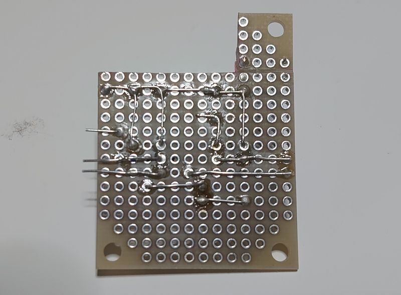 穴開け加工を終えて、配線の半田付けの工程に来ましたが、