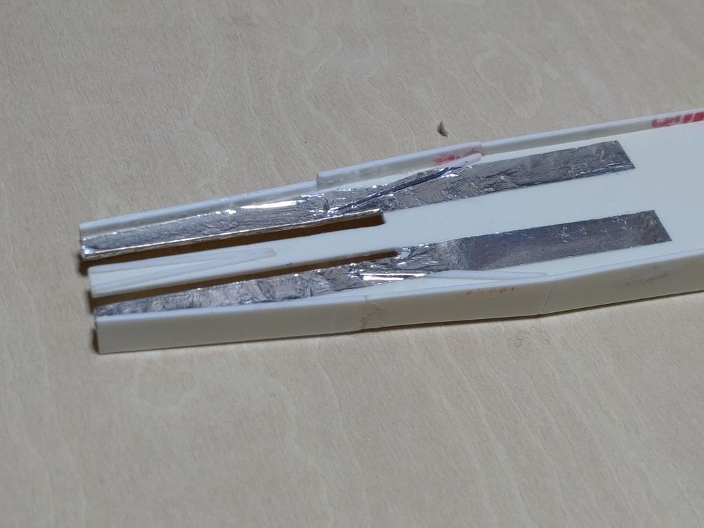 試作を行ってきたものをサーフェーサーを吹いてアルミ箔を貼りました。